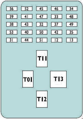 T02 Right and left high beam headlights 20 A