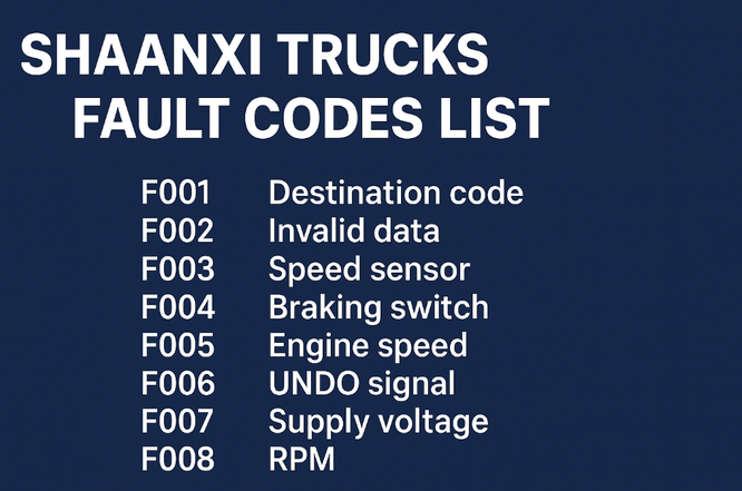 Shaanxi Trucks Fault Codes List - a complete list of Shaanxi truck error codes with decoding and explanations. Here you will find the main faults related to the engine, transmission, electrical system and other units. The code table facilitates diagnostics and helps to quickly determine the cause of the breakdown for subsequent repair